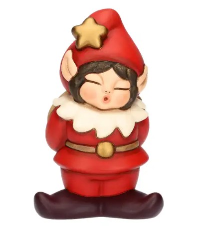 Elfo Birbo Medio Thun in ceramica dipinta a mano, decorazione natalizia gioiosa e raffinata, perfetta per l’albero, tavoli o come regalo originale.