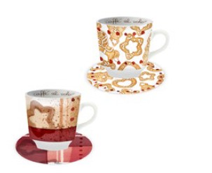 Misure: tazza Ø 10,5 cm - 9 cm h; piattino Ø 17 cm Materiali: porcellana