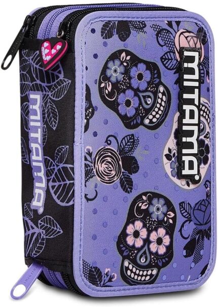 Astucci Mitama a 3 scomparti, fantasie varie per bambine e bambini, completi dell’occorrente per la scuola elementare: matite, pennarelli, penne, righello, gomma e tanto altro, per un totale di 47 pezzi. Dimensioni astuccio: 14,5 x 7,4 x 20 cm. Dalla linea scuola Mitama, astucci a tre cerniere che uniscono grafiche vivaci a un design pratico. Grazie ai tre scomparti attrezzati, gli astucci Mitama sono infatti perfetti per trasportare, in maniera ordinata, gli strumenti di scrittura e disegno indispensabili per una giornata di studio a scuola o di svago nel tempo libero. Gli astucci sono realizzati in poliestere impermeabile.