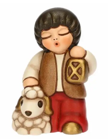 THUN – Bimbo con lanterna in ceramica, Bianco, “presepe classico”