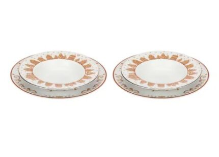 Materiale: Porcellana Misure: diametro 24,3 cm - diametro 29,5 cm Cura del prodotto: idonei ad utilizzo nel microonde (tranne decoro con oro/argento e l'alzata); idonei ad utilizzo in lavastoviglie (tranne decoro con oro/argento e l'alzata); non utilizzare spugne abrasive; ricorda che la ceramica è fragile e va trattata con cura
