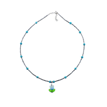 La collana tulipano è un vero e proprio capolavoro artigianale, realizzato con cura e passione da esperti artigiani. È un pezzo che incarna un'eleganza delicata e che celebra l'armonia tra la forza della natura e l'eleganza del design. L'energia vibrante dell'ematite turchese e la delicata bellezza simbolica del tulipano si fondono in una creazione unica e affascinante. È un accessorio che non passa inosservato, un'espressione raffinata di stile personale e un omaggio alla bellezza rigogliosa e delicata del mondo naturale. Indossare questa collana significa portare con sé un tocco di primavera eterna e celebrare la bellezza che fiorisce in ogni momento. La chiusura e la catena finale ne consentono la regolazione. Realizzato in argento 925 di alta qualità e nichel free, è ideale anche per le pelli più sensibili. Lunghezza collana: 42 cm