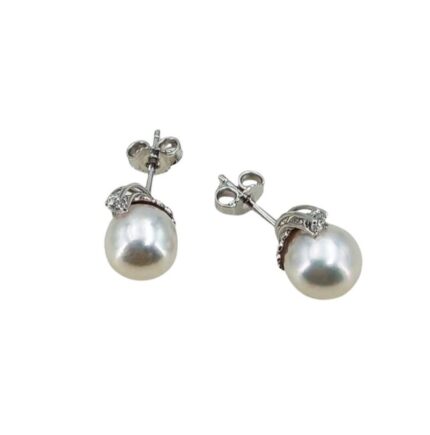 Orecchini in oro bianco, perla Akoya e diamanti naturali