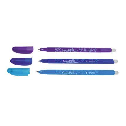 Penna a sfera con inchiostro cancellabile, con doppia gomma incorporata molto resistente. Dotata di cappuccio traslucido anti-soffocamento e di spazio per la personalizzazione. L?inchiostro della penna si fissa in modo permanente sulla carta dopo 24 ore.