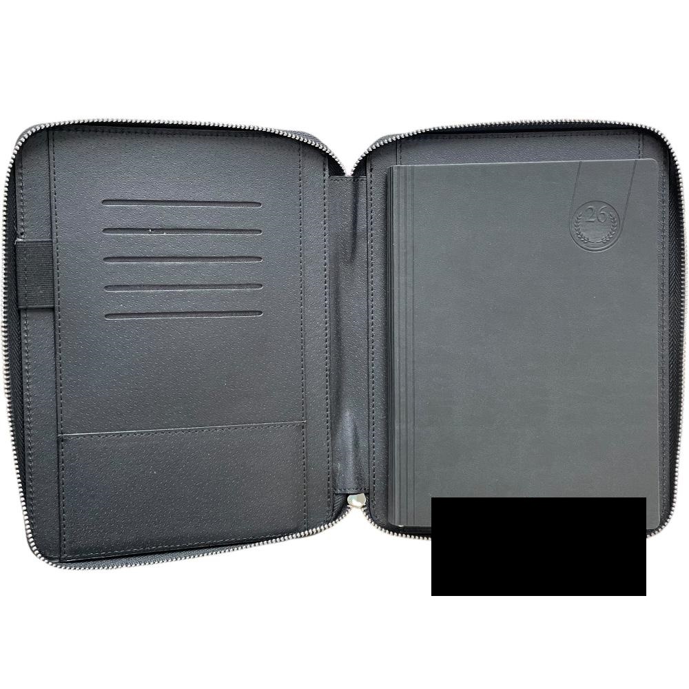 Tavecchi, sinonimo di qualità propone questa cartella in similpelle con chiusura a zip nella dimensione 19.5x25cm marchiata sul retro, al cui interno troverai un’agenda giornaliera removibile così da poterla utilizzare in futuro con una nuova agenda o anche un taccuino in base alle proprie esigenze.