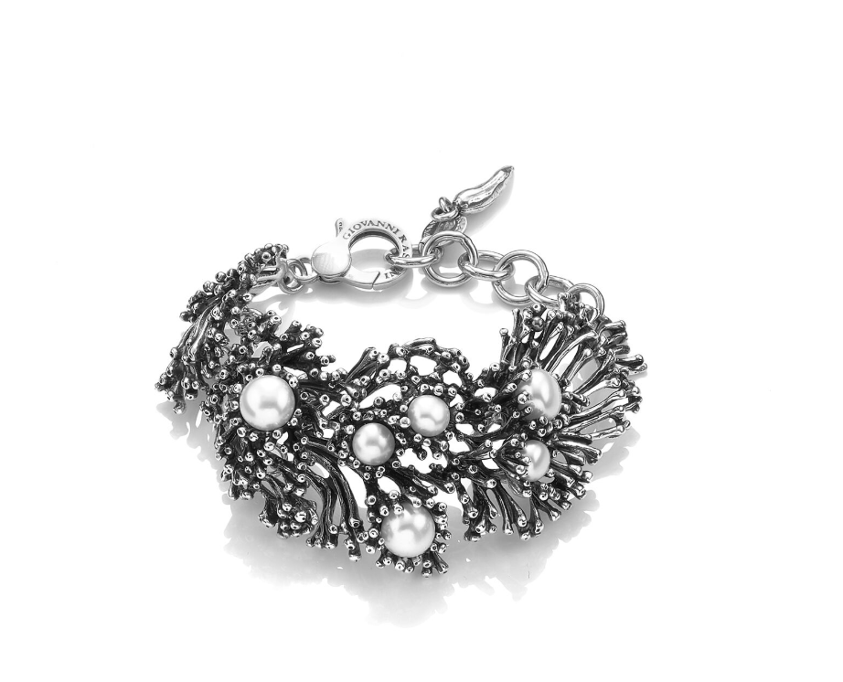 La lavorazione dei nostri maestri artigiani e la sapiente scelta dei materiali rendono unica la Collezione Anemone, di cui fa parte questo bracciale che risplende in tutta la sua eleganza. Tentacoli d’argento brunito abbracciano perle naturali dai riflessi cangianti, creando un movimento sinuoso che avvolge il polso in un equilibrio meravigliosamente studiato.