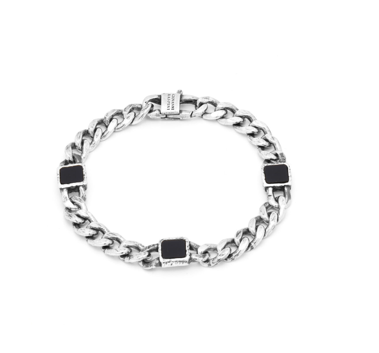 Il Bracciale Raspini Grumetta Onice è abbinabile alla Collana Dadini ed onice o all’anello martellato quadrato onice.