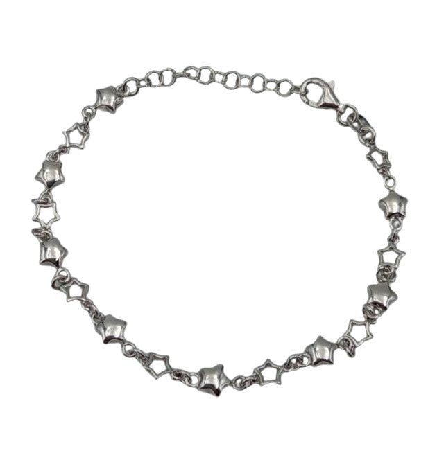 Aggiungi un tocco di luce al tuo stile con questo delicato bracciale in argento con stelline. Il design semplice ma raffinato lo rende perfetto per ogni occasione: dalle uscite quotidiane ai momenti speciali.