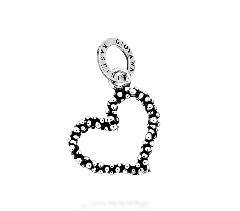 Il Charm Raspini Cuore mimosa è un ciondolo in argento di Giovanni Raspini con lavorazione Perlage.