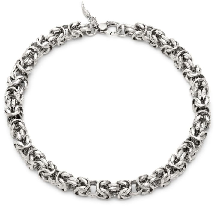 La collana Bizantina Luce Grande in argento firmata Giovanni Raspini reinterpreta con maestria l’iconica catena bizantina, esaltandone la luce e la matericità. Le maglie, finemente lavorate a mano, presentano una particolare sfaccettatura che cattura e riflette la luce con straordinaria intensità, donando al gioiello un’eleganza senza tempo. Realizzata a mano in azienda.