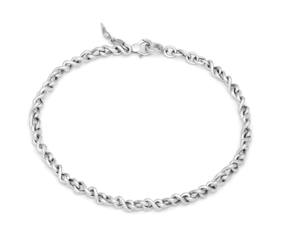 In questa collana Raspini Infinity gli elementi in argento ritorto creano il motivo dell’Infinito, che posto in sequenza regala al gioiello dinamicità ed eleganza luminosa. La collana è anche munita di un allungo di cinque maglie e del tradizionale cornetto.