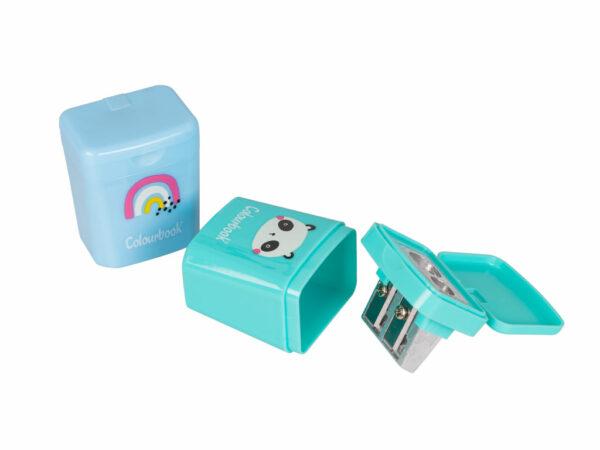 COLOURBOOK Temperino 2 Fori con Serbatoio Pastel Rainbow Azzurro Pastel