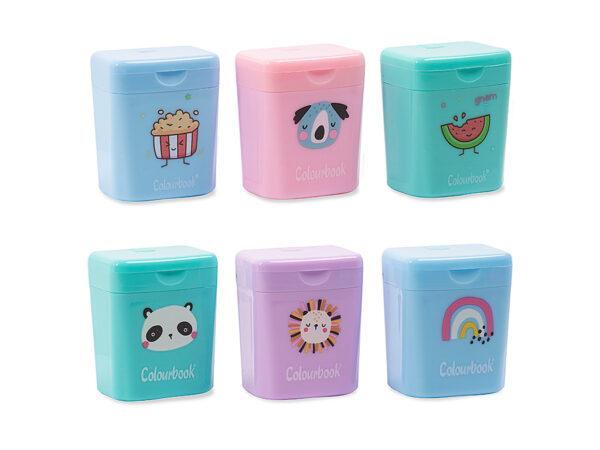 Non poteva mancare un temperino con contenitore in tonalità pastello. 6 soggetti che ti faranno compagnia nei momenti di studio, lavoro o tempo libero. Libera la creatività e preparati ad affilare matite e pastelli, punte perfettamente appuntite o arrotondate grazie alle lame in metallo. Questo temperamatite Colourbook è perfetto per tutte le matite standard e jumbo.