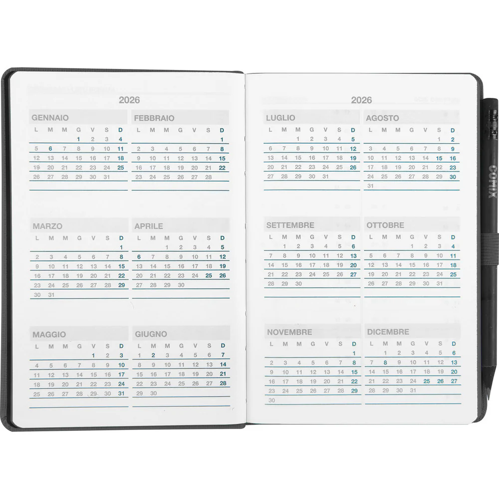 Organizza il tuo anno con stile con l'Agenda Giornaliera Business 2026. Questo elegante planner in formato A4 (21x26 cm) presenta una raffinata copertina in similpelle blu con dettagli accuratamente rifiniti. L'interno è strutturato con una visualizzazione giornaliera che offre ampio spazio per annotare appuntamenti, impegni e note importanti. La carta di alta qualità garantisce una scrittura fluida e piacevole. Il design professionale include sezioni per la pianificazione giornaliera con fasce orarie, perfetto per gestire al meglio la tua agenda lavorativa. Le pagine sono organizzate in modo chiaro e funzionale, con intestazioni in italiano e inglese per un utilizzo internazionale. La rilegatura robusta assicura che l'agenda rimanga in perfette condizioni per tutto l'anno. Un accessorio indispensabile per professionisti che desiderano mantenere ordine e efficienza nella gestione del proprio tempo.