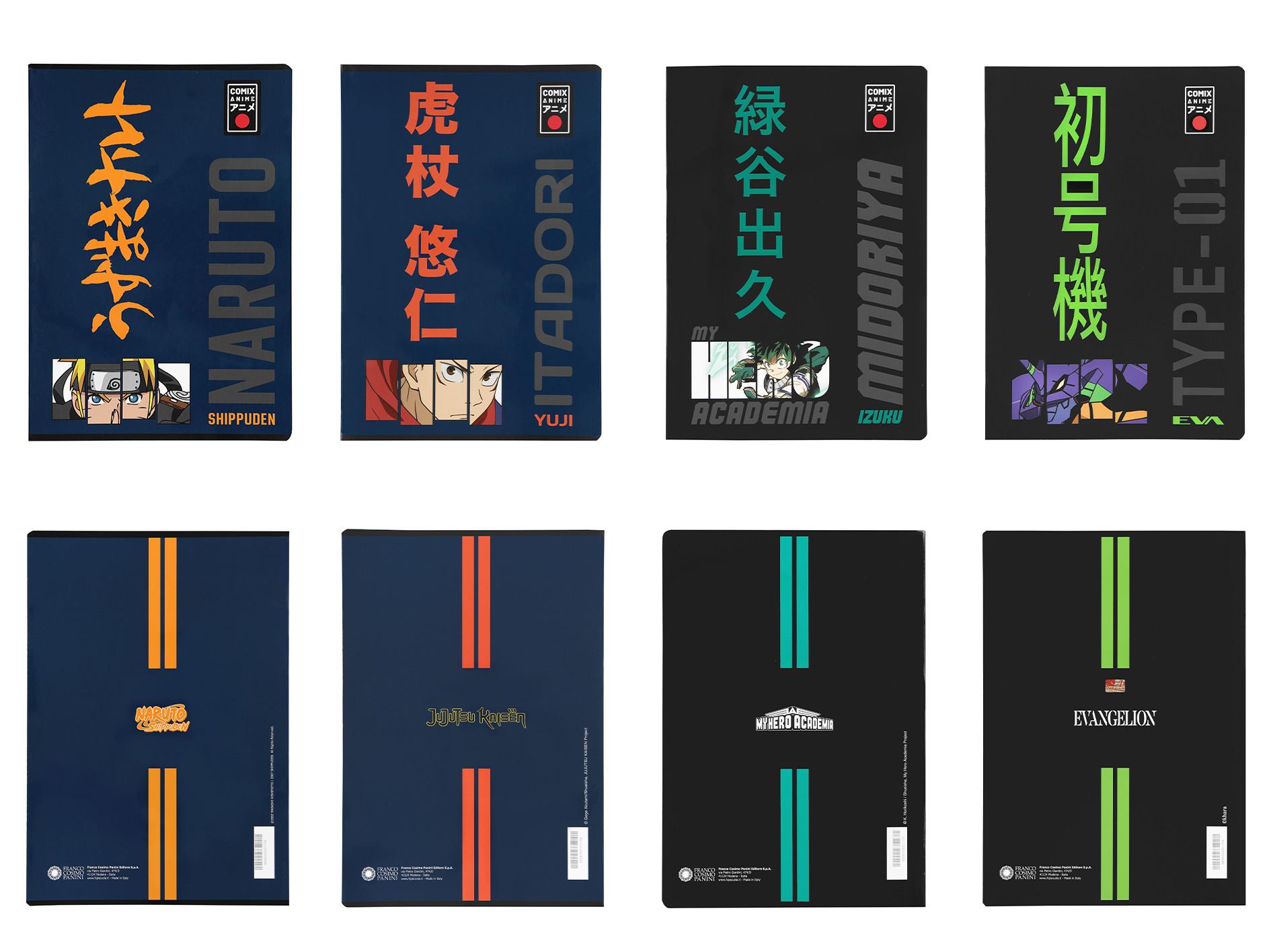 Disponibile in confezione da 12 quaderni con fantasie assortite dei tuoi personaggi anime preferite, Naruto, Jujuten Krisen, My Hero Academia, Evangelion.