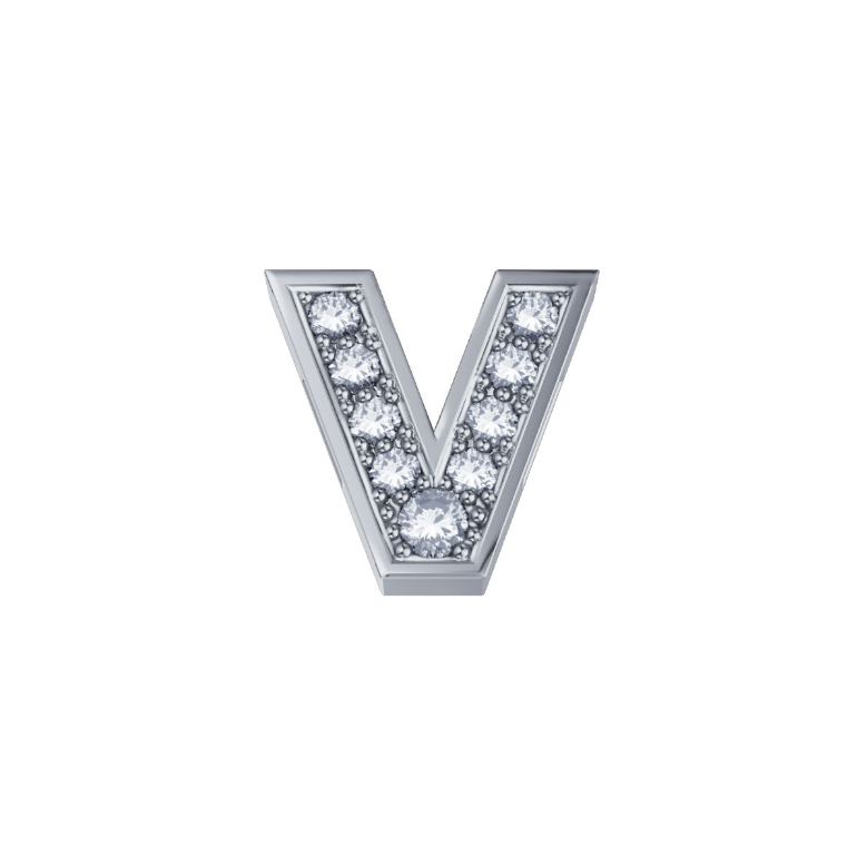 Lettera V in oro bianco e diamanti della Collezione Messaggi: le parole formano pensieri, sussurrano messaggi segreti o rivelano sentimenti conosciuti. I numeri rappresentano un valore temporale, quantitativo o simbolico. Numeri come interpretazione della cabala o nuovi codici personali per distinguersi. Con le lettere in oro e i numeri della collezione Messaggi, i bracciali componibili DonnaOro Elements sono il regalo perfetto per esprimere ogni cosa con stile e personalità
