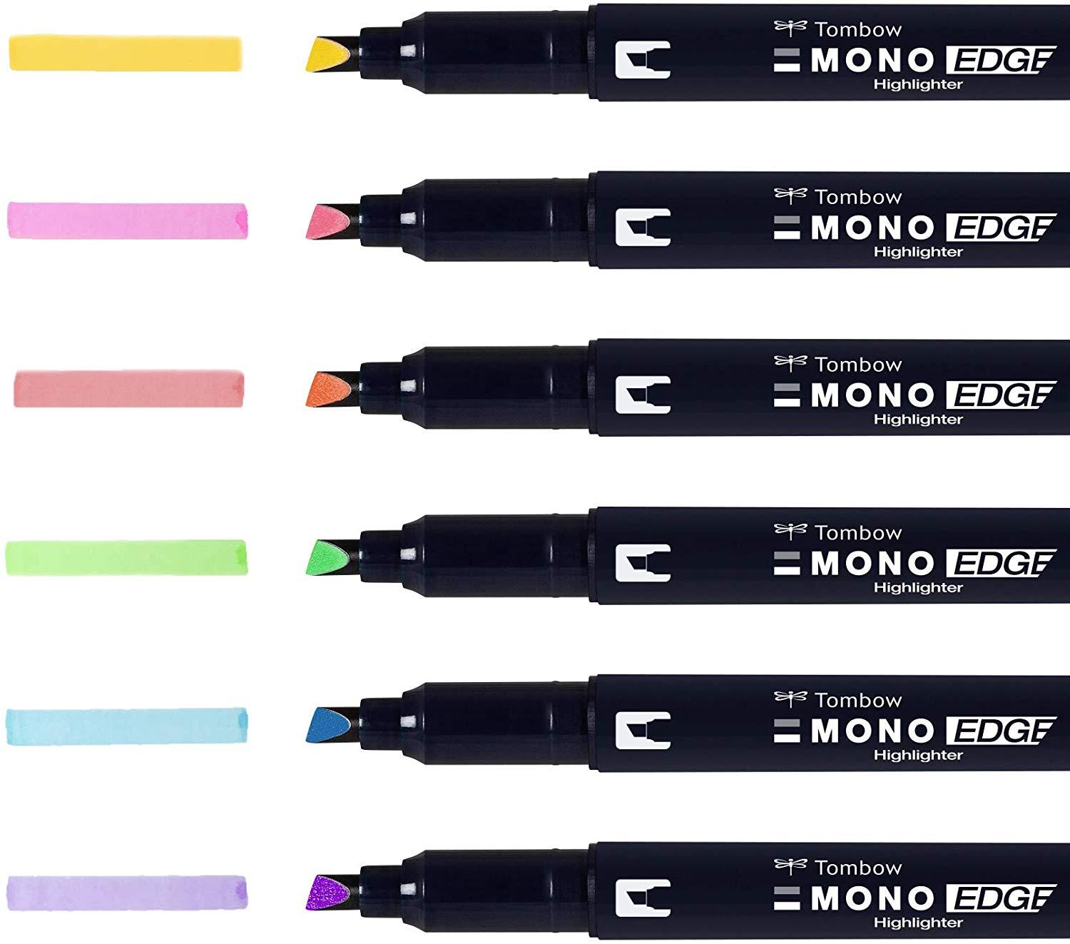 Evidenziatori FLUO doppia punta. Inchiostro a base d’acqua. Punta larga a scalpello da 3,8mm e arrotondata extra fine da 0,8mm. MONO EDGE ? particolarmente indicato per gli studenti ma anche per colorare e decorare i Bullet Journal, fare scritte a mano, scarabocchi e molto altro. L’inchiostro non passa attraverso la carta e si asciuga rapidamente. La punta a scalpello ha una custodia protettiva in plastica che non sporca righelli e stencil.