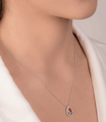 Il Girocollo Visconti Goccia Rubino è caratterizzato da questa splendida gemma dal taglio a goccia, circondata da un doppio contorno di diamanti della migliore qualità.