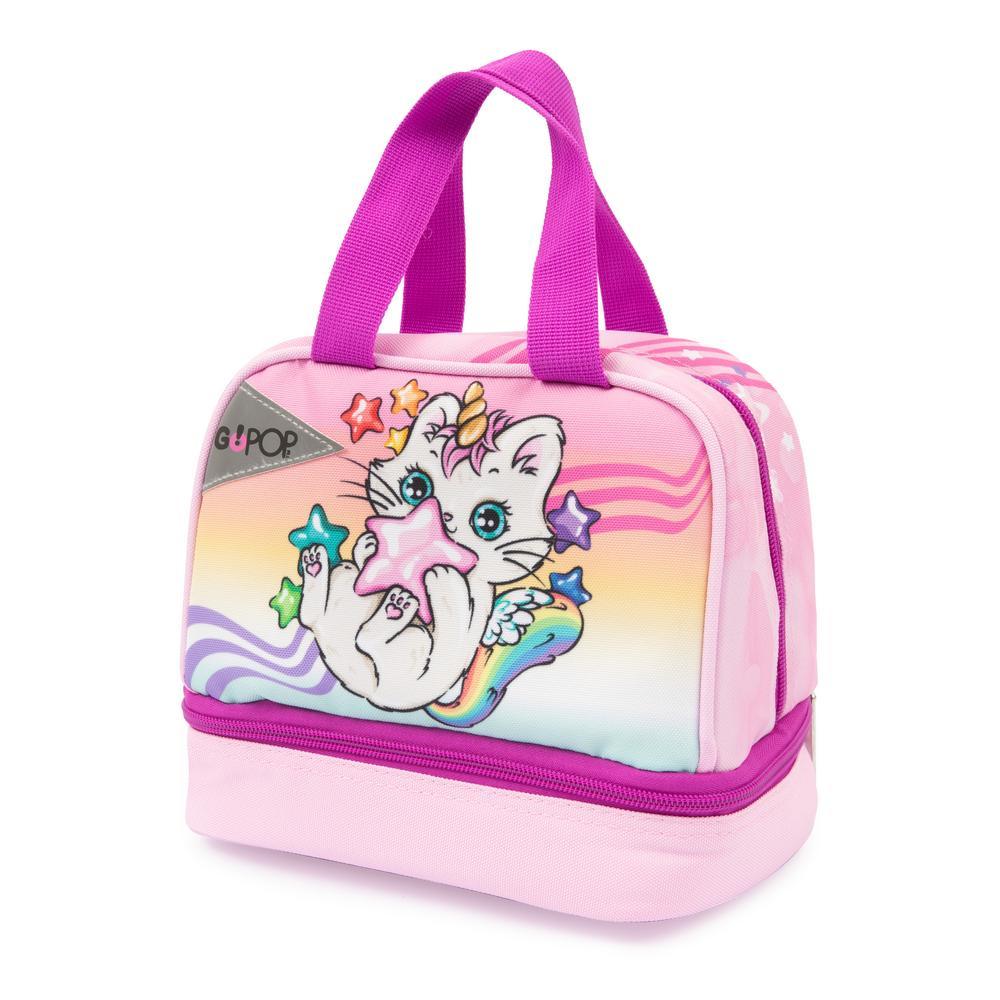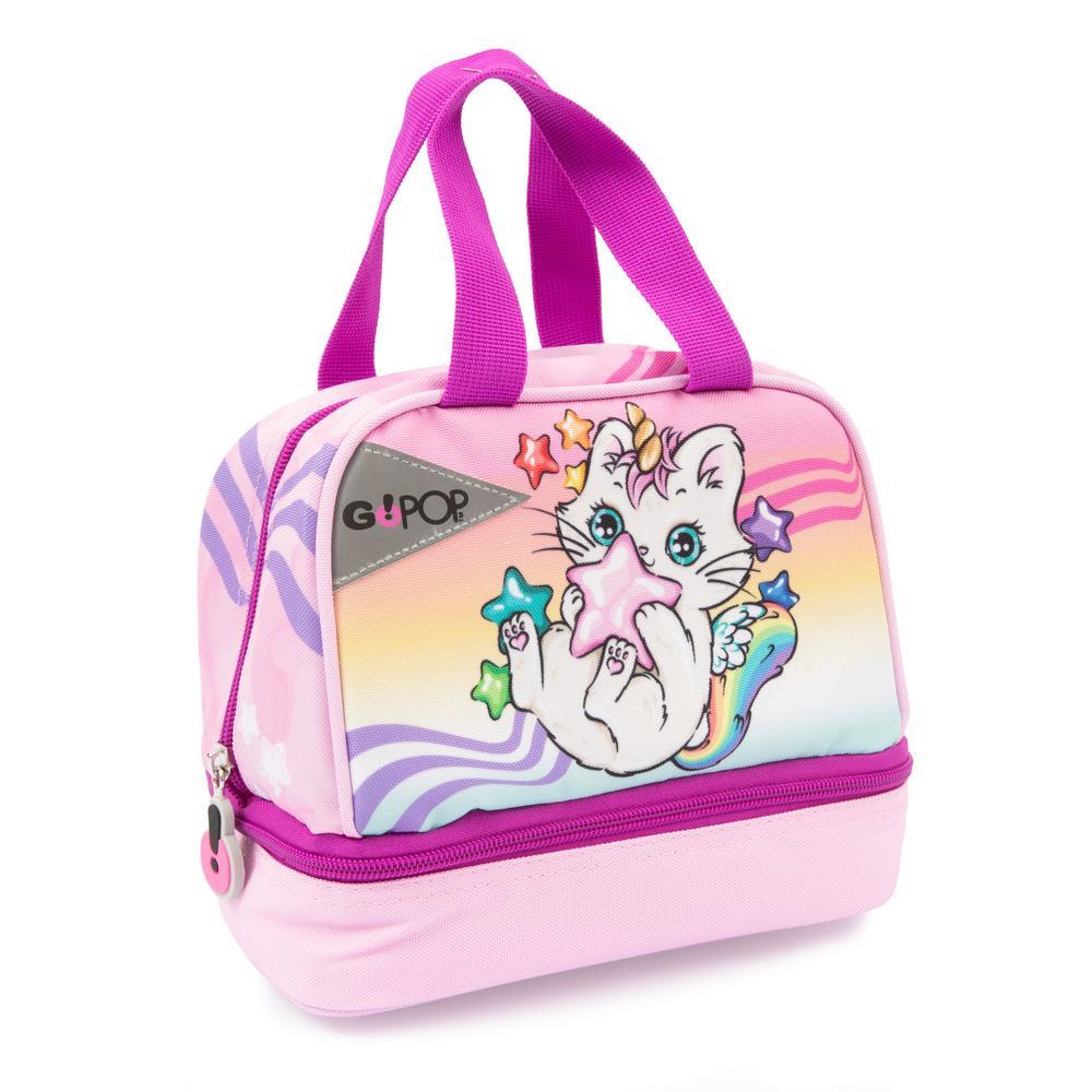 La Lunch Box GoPop Meowcorn è l’alleato perfetto per una pausa pranzo e merenda ricca di energia! Realizzata in resistente poliestere 900D, è dotata di una fodera interna termica che mantiene il cibo fresco durante l’intervallo scolastico. I due scomparti termici permettono di separare il pranzo dalla merenda, offrendo praticità e freschezza per tutto il giorno. Con il design dinamico del dinosauro raptor in azione, questa lunch box aggiunge un tocco di energia e divertimento. Perfetta sia per la scuola che per l’asilo, è ideale per ogni piccolo sportivo che ama fare una pausa pranzo energica e una merenda in compagnia dei suoi compagni!