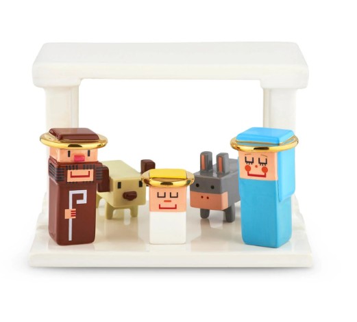Immagina un attimo: la magia del Natale racchiusa in una scena custodita da forme semplici, pulite, intense. Con il presepe Miracolo! di Alessi, firmato dai designer Marcello Jori e Massimo Giacon, la tradizione prende una nuova veste — fresca, contemporanea, sorprendente. Le figure della Natività — Maria, Giuseppe, il Bambino, il bue, l’asinello — non appaiono come piccole sculture tradizionali, ma come personaggi dalla forma squadrata, grafica, quasi pixelata: un richiamo ironico e poetico al mondo dei videogiochi, che reinventa con eleganza il presepe classico.
