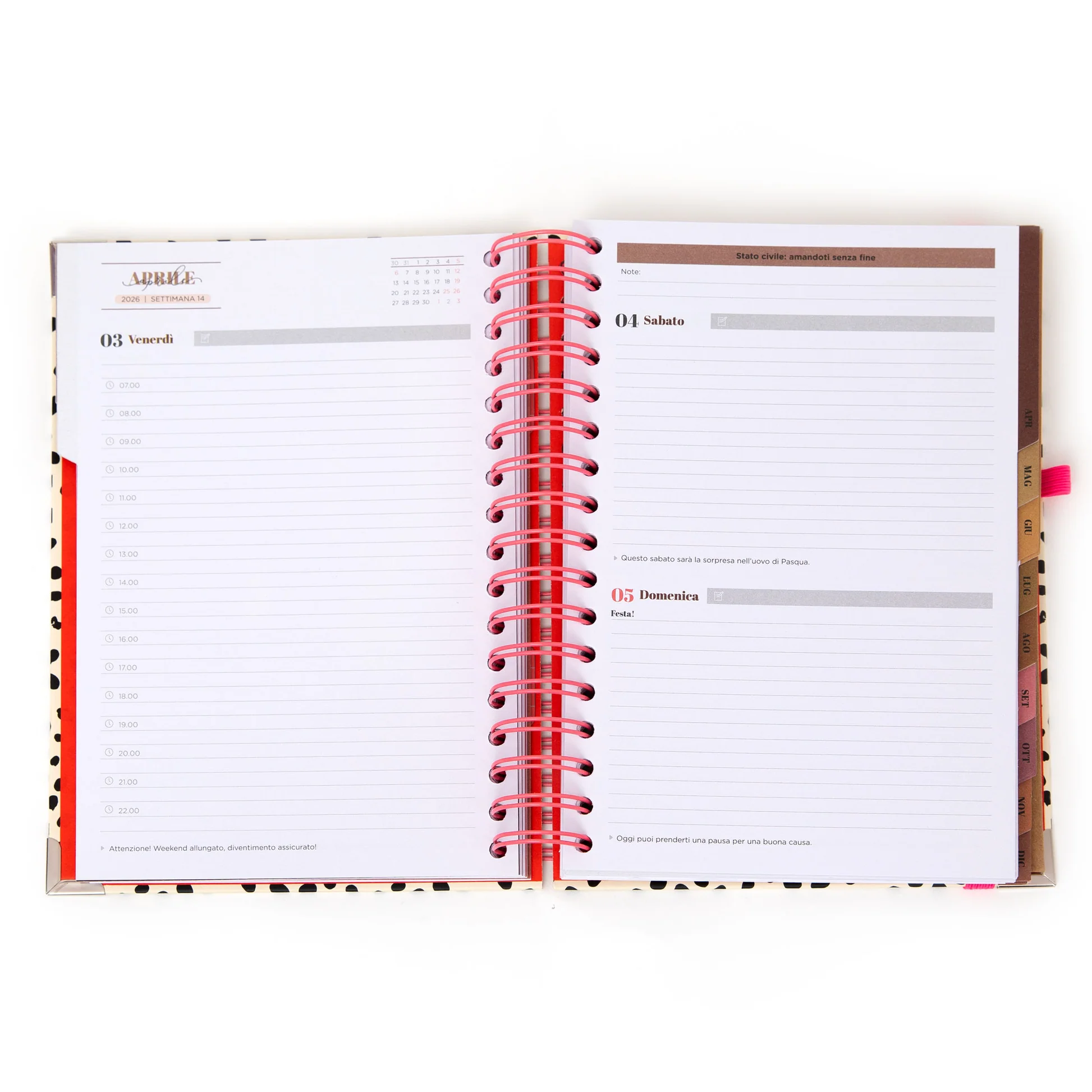 Agenda stile Office di Mr. Wonderful, un disegno un po’ più sobrio e misurato rispetto al nostro stile più classico, per cui piacerà tantissimo a un pubblico più adulto. Con organizzazione giornaliera, va da gennaio a dicembre 2026. Questa agenda contiene: