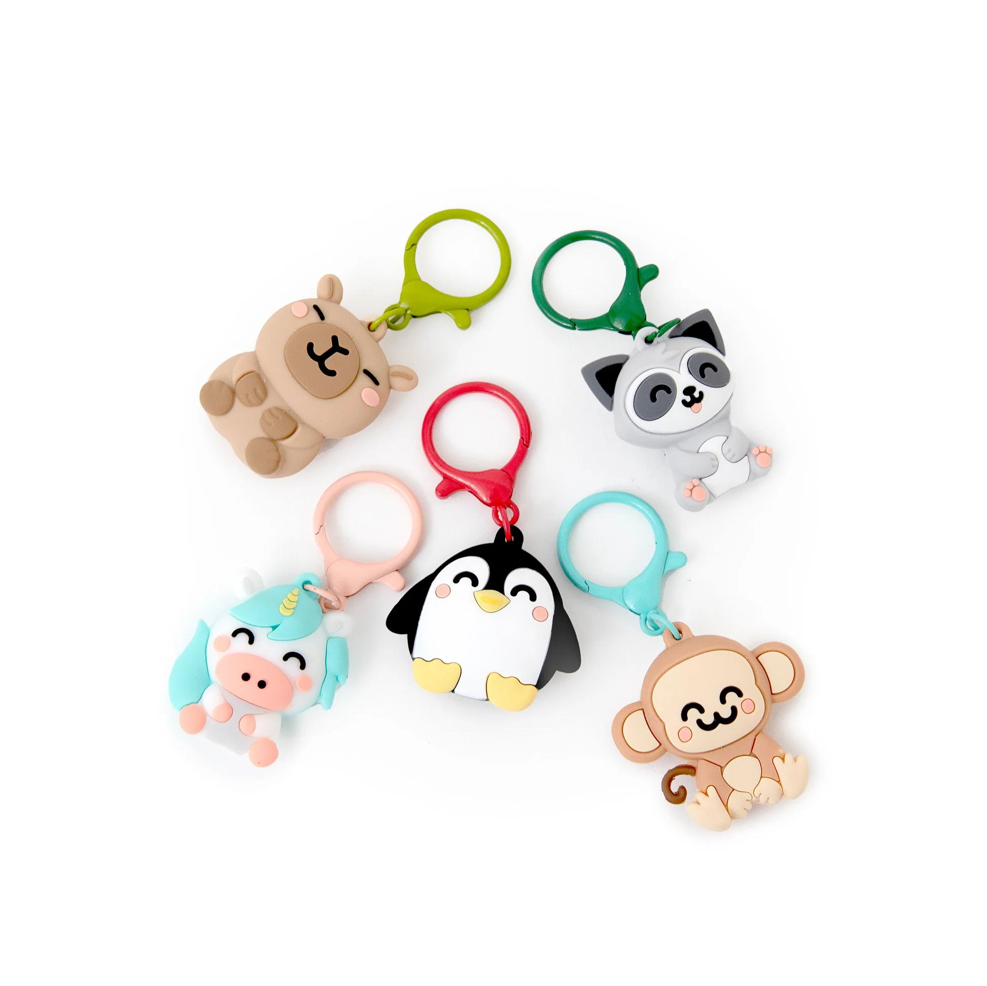 · 5 portachiavi in gomma (scimmia, pinguino, procione, capibara e unicorno)
