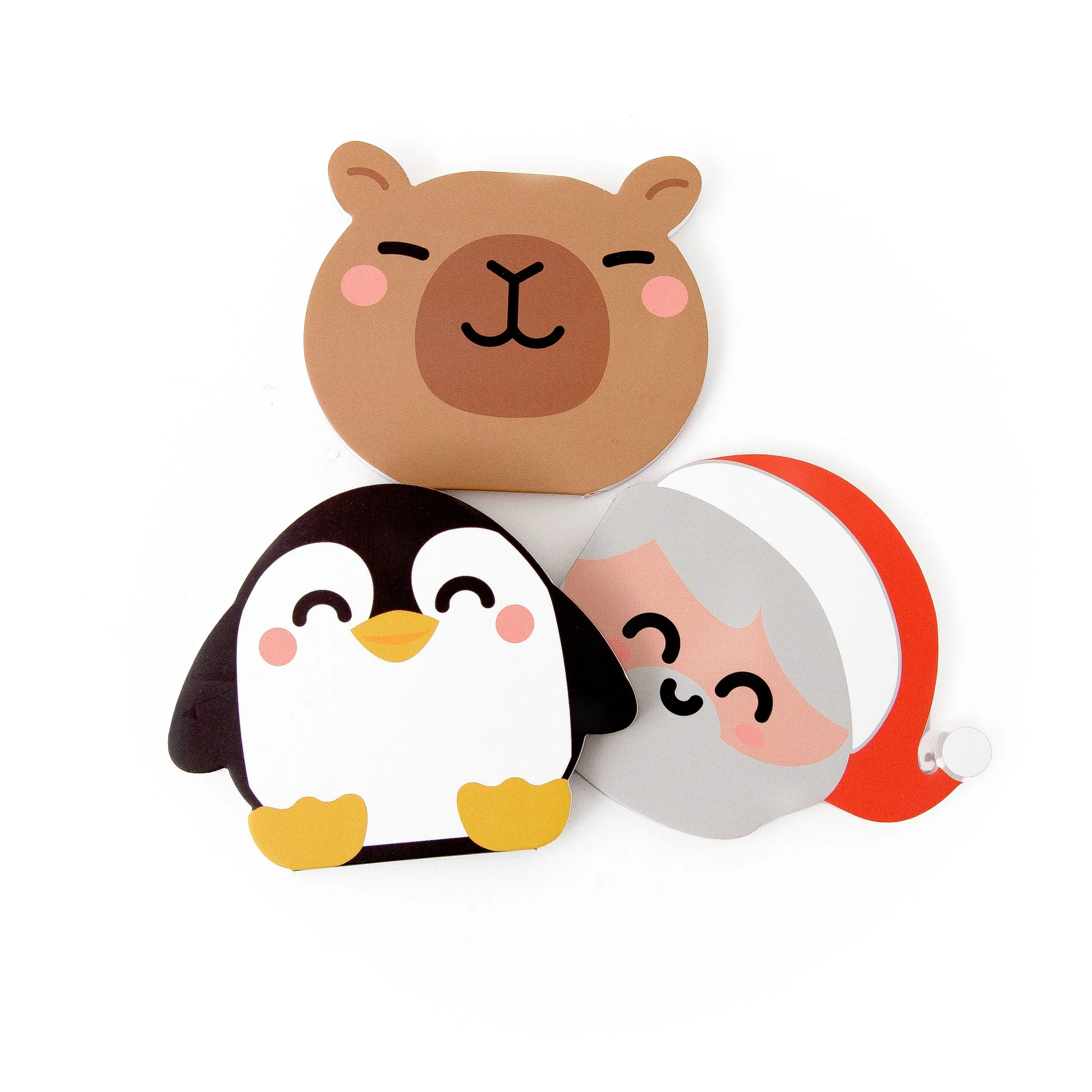 · 3 mini quaderni con forme (Babbo Natale, capibara e pinguino)