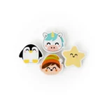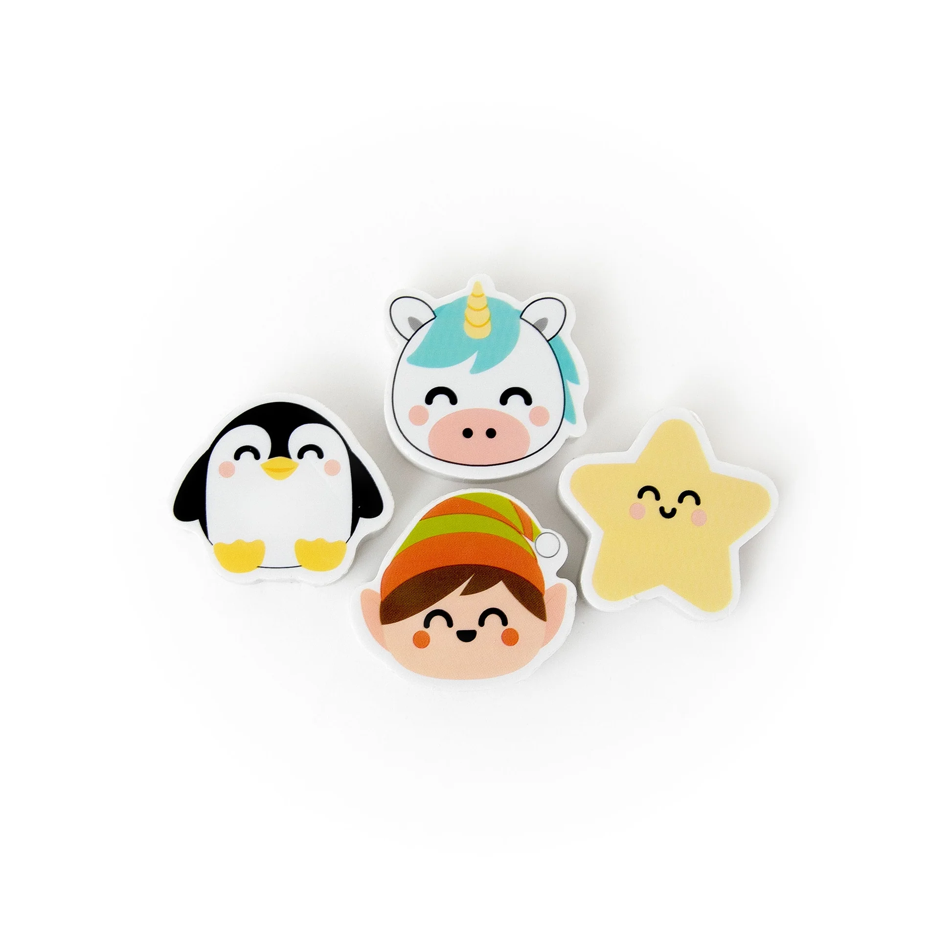 · 4 gomme da cancellare con forme (elfo, unicorno, pinguino e stella)