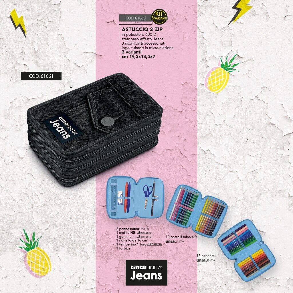 TINTA UNITA Astuccio 3 Zip Jeans Nero Scuola 2024/25 Promo