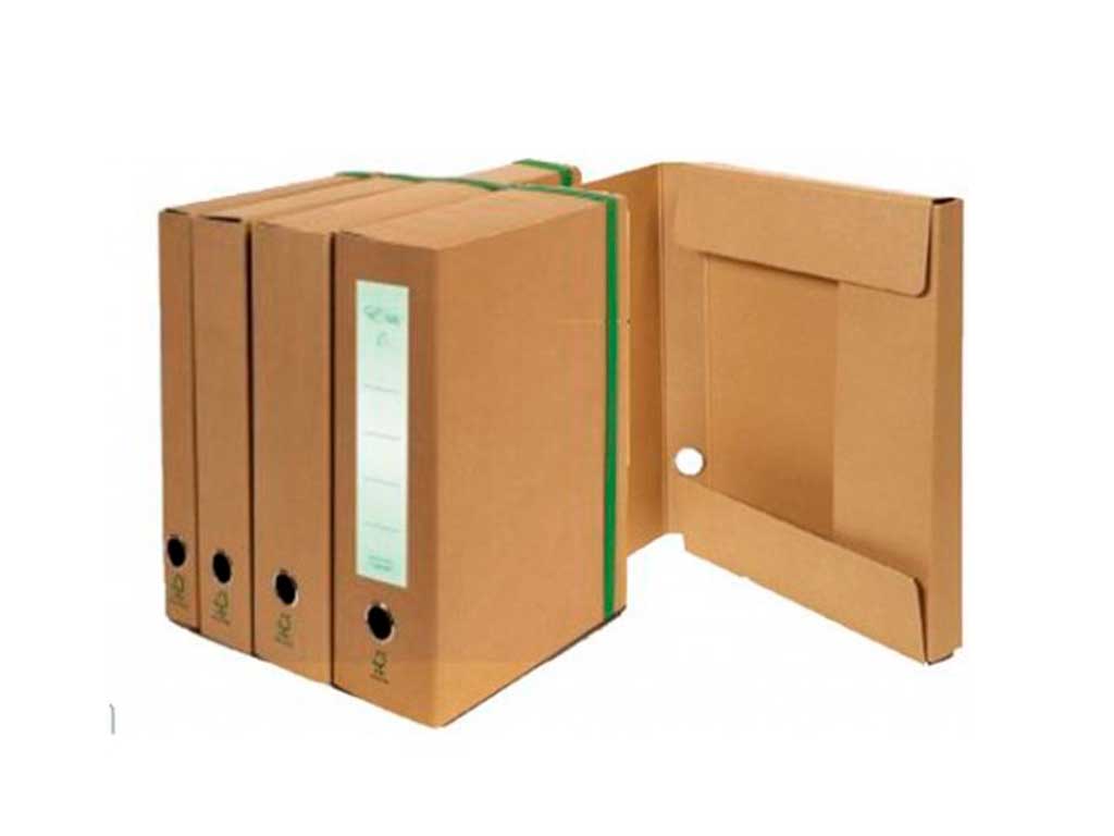 Indeformabile e robusto cartone da 1,5 mm. di spessore in pasta color avana certificato FSC®. 2 alette saldamente applicate su quadrante interno mediante 2 rivetti. Chiusura mediante elastico a fettuccia di colore verde. Anello di estrazione in acciaio nichelato diametro 25 mm. posto centralmente sul dorso a mm. 70 dalla base. Etichetta colorata scrivibile adesiva, stampata a 4 righe, presente all’interno di ciascuna cartella. Scatola completamente apribile. Archiviazione di ogni genere di documenti, anche trattenuti mediante buste in plastica trasparente o cartelline semplici/3 lembi in cartoncino.
