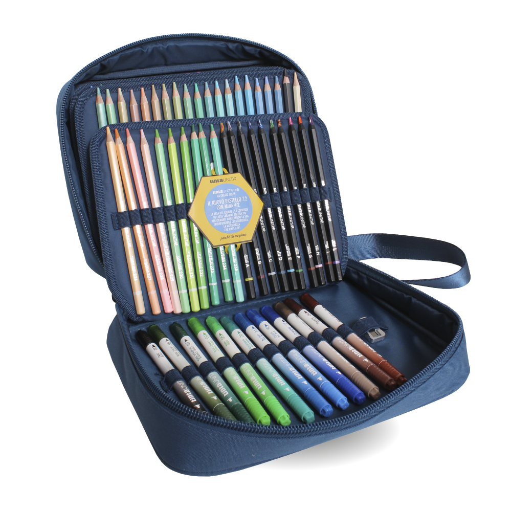 L’art box include: – 108 pastelli mina 4.2 Tinta Unita: pastelli classici con un pigmento ricco per colori vividi e brillanti. – 10 pastelli multicolor mina 4.2 Tinta Unita: per effetti cromatici unici e sfumature sorprendenti. – 2 matite HB Architetto: perfette per il disegno tecnico e schizzi dettagliati. – 24 pennarelli Brush Bi Punta Tinta Unita: versatili e perfetti per varie tecniche di coloritura, dal tratto fine alla calligrafia. – 1 temperino 1 foro Tinta Unita: facile da usare, mantiene i tuoi strumenti sempre pronti all’uso.
