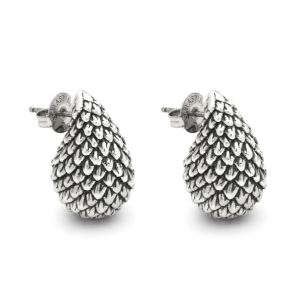 Con questi orecchini d’argento di grande eleganza e leggerezza, Giovanni Raspini esplora il tema della goccia, decorata con la texture di serpente. Eleganti e versatili, sono realizzati completamente a mano in azienda.