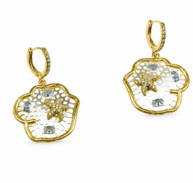 Rifiniture: placcato oro con satinatura bianza , zirconi bianchi e azzurri