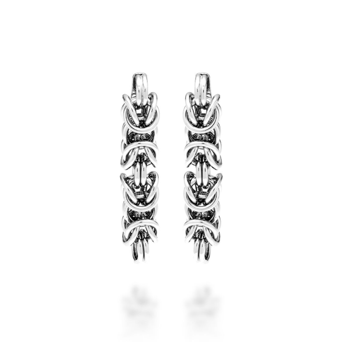 Dall’antica maglia bizantina nascono questi orecchini giovani e frizzanti in argento. Bellezza contemporanea che si rinnova nelle forme e nei volumi. Fatto completamente a mano.