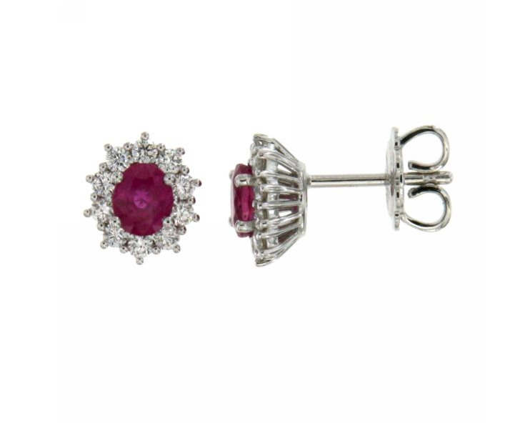 Gli Orecchini Visconti Rubini piccoli sono caratterizzate da queste splendide gemme dal taglio ovale centrale, circondate da contorno di diamanti della migliore qualità