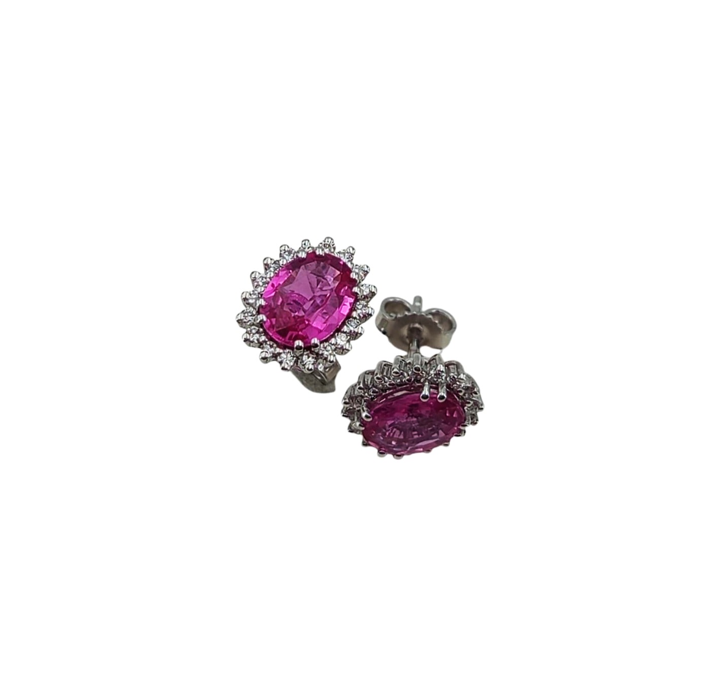 Gli orecchini Zaffiri Rosa Ovali con contorno diamanti sono corredati di nostra certificazione gemmologica