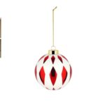 Toccandola, puoi percepire la superficie liscia del vetro, la leggerezza apparente grazie all’attacco sottile, la brillantezza che cattura le luci attorno. Quando la luce dell’albero colpisce la sfera, il vetro riflette piccole scintille dorate, mentre il rosso e bianco creano un contrasto caldo e raffinato.