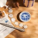 Il bordo è decorato con piccoli elementi natalizi ⭐️🎄: stelle e agrifoglio, che aggiungono un tocco festoso senza appesantire la finezza del disegno.