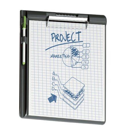Porta Blocco  con molla Sei Super Block N, per prendere appunti in qualsiasi luogo e posizione. Porta blocco doppi in Colpan® (cartone rivestito in PVC), con molla in acciaio e tasca interna.