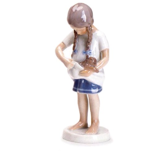 Lo sfondo è semplice ma elegante, con accenni di elementi domestici o naturali che aggiungono profondità senza distrarre dall’elemento centrale. La porcellana bianca finissima, decorata con il caratteristico blu sottosmalto Royal Copenhagen, mette in risalto i dettagli dei lineamenti, dei capelli e del manto del gatto 🎨💙.