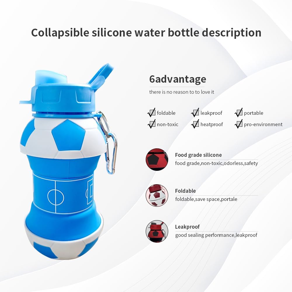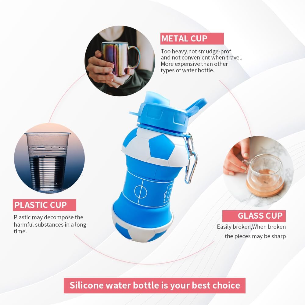 Borraccia in silicone alimentare, privo di sostanze nocive e antigeniche, con maniglia di trasporto in metallo e coperchio anti-perdita. Ottima per l’escursionismo, lo sport, il campeggio o in viaggio. Vantaggi: i tuoi bambini bevono più acqua solo per avere una bottiglia così bella e divertente. È un regalo perfetto che viene fornito con la sua bella scatola inclusa. Caratteristiche: capacità chiusa a forma di palla 200 ml e aperto 550 ml. A prova di perdite poiché ha una guarnizione sul tappo rimovibile per garantire la tenuta. Resistenza al freddo e al calore da -20 a 120 °C. Uso quotidiano: con il moschettone incluso i tuoi bambini potranno portarlo appeso allo zaino o alla cintura. Non preoccuparti se cadono, non si romperà così facilmente.