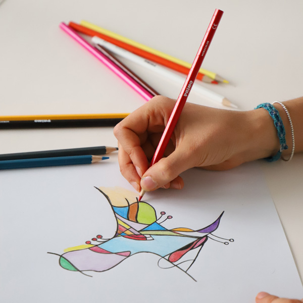 Matite colorate esagonali, laccate.  Sono matite dalle tinte luminose e vive. I segni possono essere sovrapposti ed incrociati ad ottenere morbidi effetti di chiaroscuri.