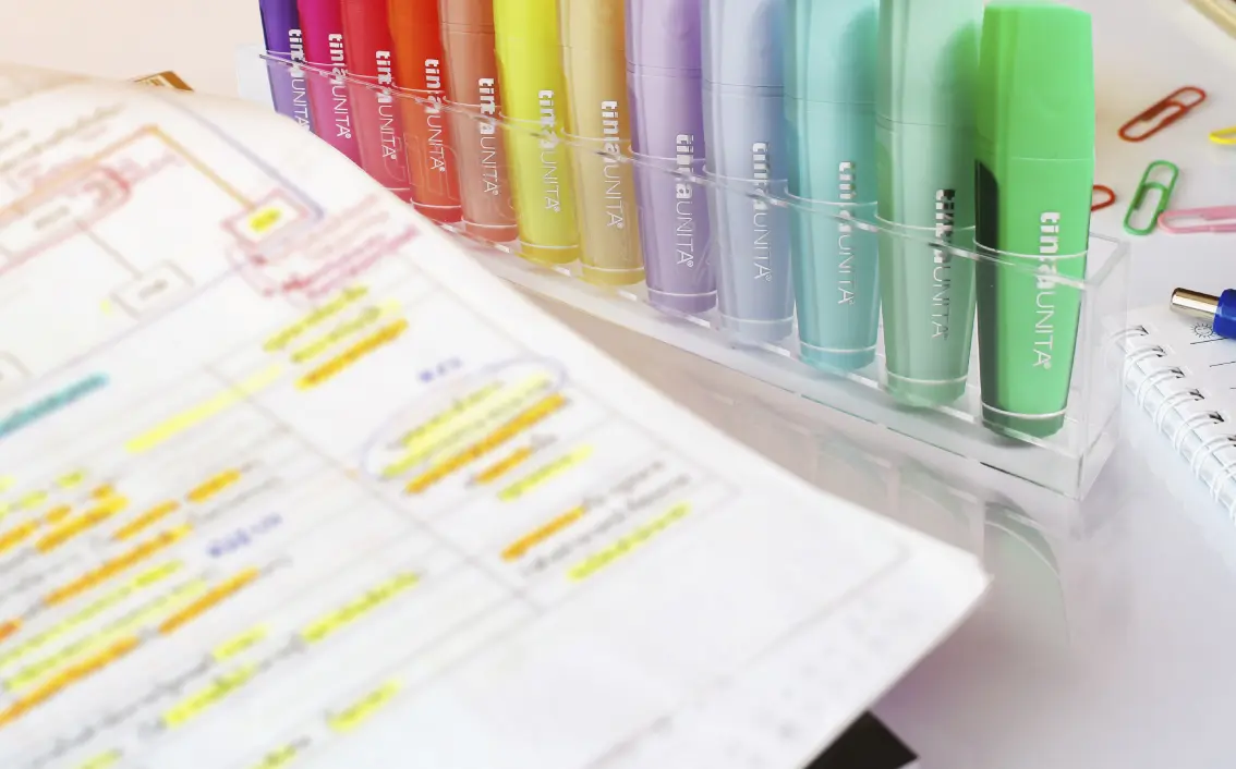 Pratico Set Scrivania da 18 Evidenziatori di Tinta Unita.