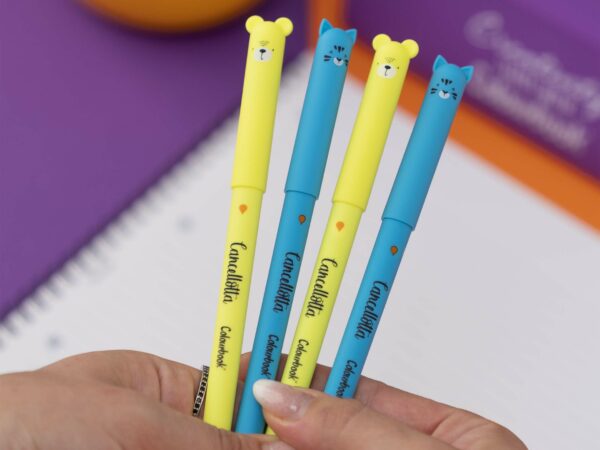 A tutti gli errori c’è un rimedio con la penna gel termosensibile Cancellotta! La nuova collezione si arricchisce di nuovi personaggi e inchiostri! Le penne Cancellotte sono l’ideale per bambini che frequentano la scuola primaria e le elementari, ma sono perfette anche per chiunque voglia aggiungere un tocco di colore e tenerezza alle sue giornate. Oltre ai nuovi animaletti (chimera, cane, gatto, volpe, orso, ippo, panda, topino), puoi scegliere la tua penna preferita tra le opzioni di inchiostro disponibili. Infatti, ora disponiamo di 4 colori di inchiostro: blu, rosso, verde e nero, per un’esperienza di scrittura ancora più completa. La gomma a semisfera rimuove facilmente l’inchiostro termosensibile senza danneggiare il foglio. Acquista la tua penna cancellabile preferita e rendi la scrittura divertente e creativa! Inchiostro terminato? Nessun problema! Acquista i nuovi refill disponibili in tutti i colori. Collezionale tutte.