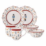 Le figure dello schiaccianoci, con il loro fascino classico e festivo 🎅🤴, sembrano prendere vita ad ogni sorso di caffè ☕ o di cioccolata calda 🍫. I colori caldi e vivaci, combinati con la lucentezza della porcellana, fanno brillare la tua tavola come un piccolo angolo di magia natalizia ✨🎄❄️.