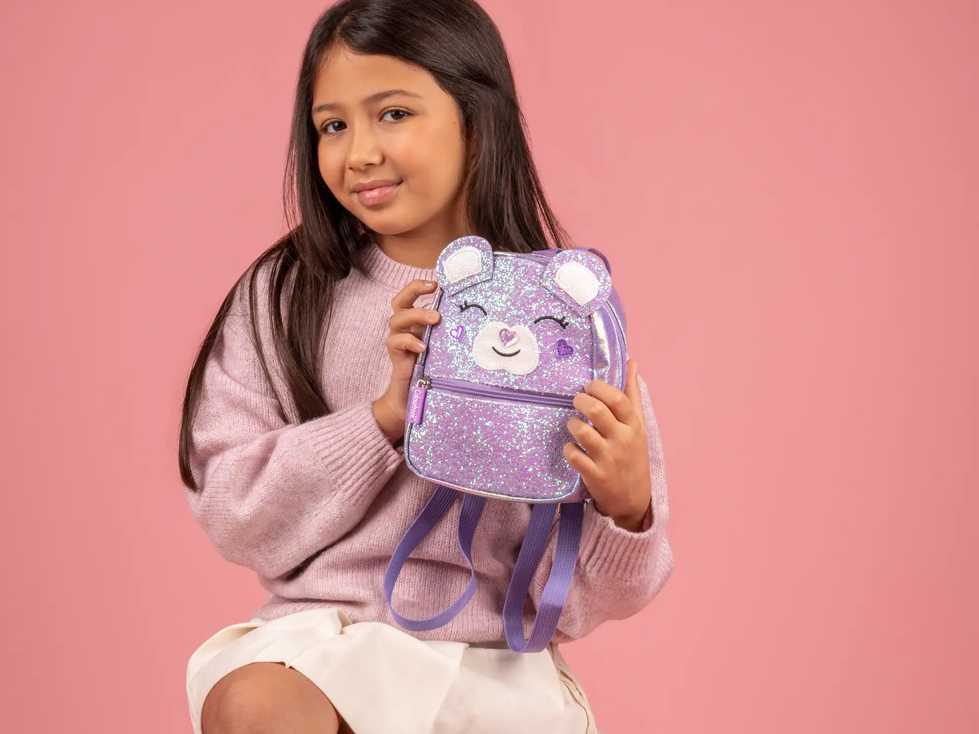 Shiny Bags Colourbook Kids: tre modelli di mini zaini, ciascuno ispirato a un adorabile animaletto: orsetto, panda e farfalla. Realizzati con materiali di alta qualità e decorati con glitter scintillanti, questi zainetti sono caratterizzati da dettagli 3D unici, come orecchie morbide e ali luccicanti. Perfetti per le bambine che amano la moda e l’originalità.