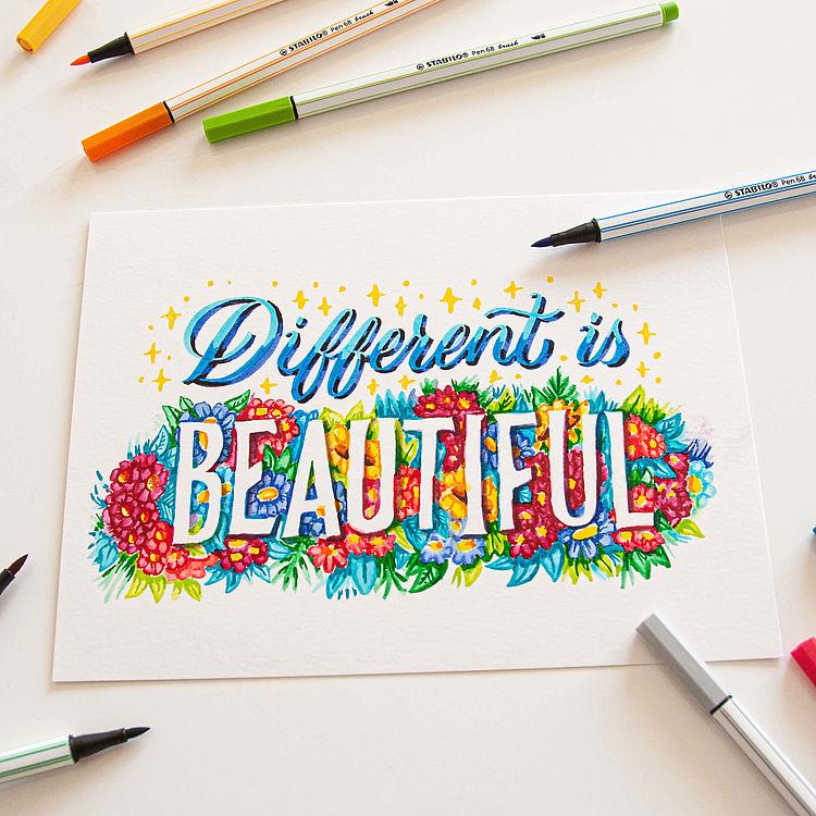Con il pennarello STABILO Pen 68 brush puoi controllare perfettamente i tuoi tratti, creando bellissime lettere in vero stile hand lettering. Potrai realizzare bellissime opere in modo semplice e veloce.
