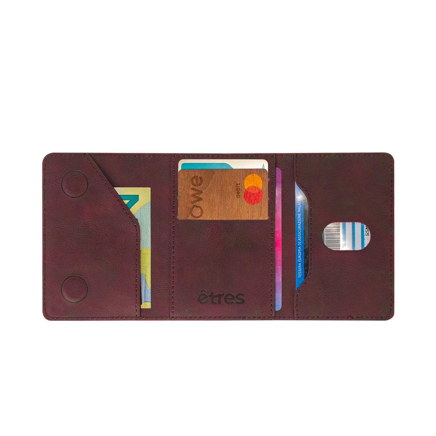Dotato di diversi scomparti per carte, con un ampio spazio pensato per i contanti.